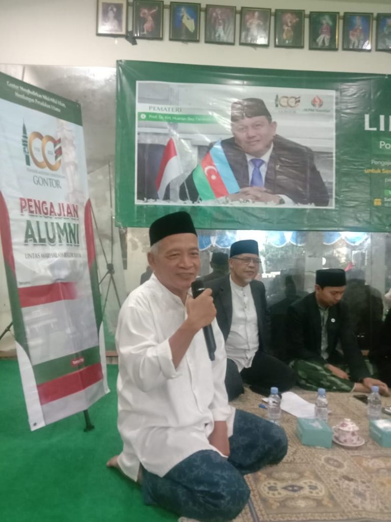 “Selamat datang di kediaman kami. Terima kasih atas kehadiran para alumni Gontor lintas marhalah. Semoga pengajian ini membawa keberkahan, mempererat ukhuwah, dan menguatkan kembali nilai-nilai yang telah kita terima di Gontor,” ujarnya.