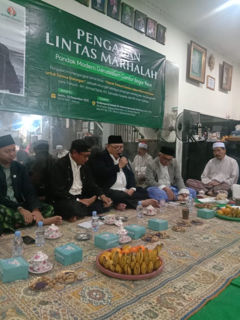 Alumni Pondok Modern Darussalam Gontor (PMDG) lintas marhalah menggelar pengajian bersama pada Sabtu malam, 20 Desember 2025, mulai pukul 20.00 WIB hingga Ahad dini hari pukul 00.30 WIB. Kegiatan ini berlangsung di kediaman Ustadz KH. Muhammad Ismail, M.Si., di Bojonggede, Kabupaten Bogor, dan dihadiri alumni dari berbagai angkatan.